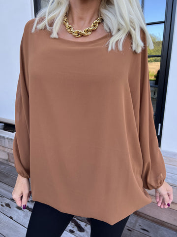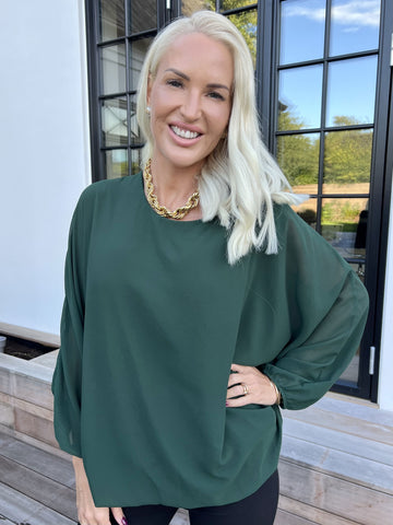 Destiny Plain - Blus i chiffong med fladdermusärmar