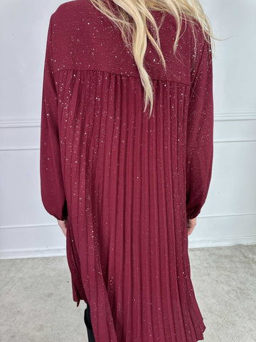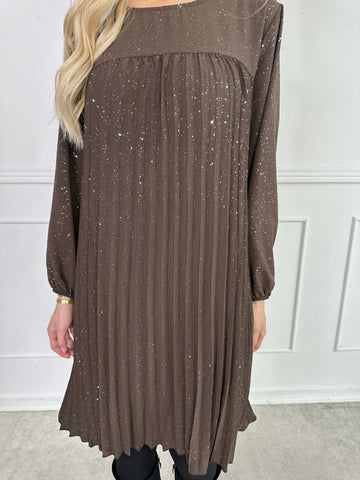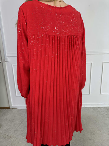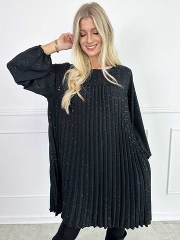Nancy Glitter Short L/S - Plisseret kjole med lommer og glimmer
