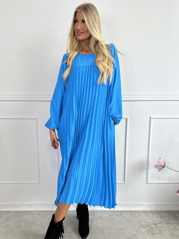 Nancy Long Sleeve - Lång klänning med plissering och fickor