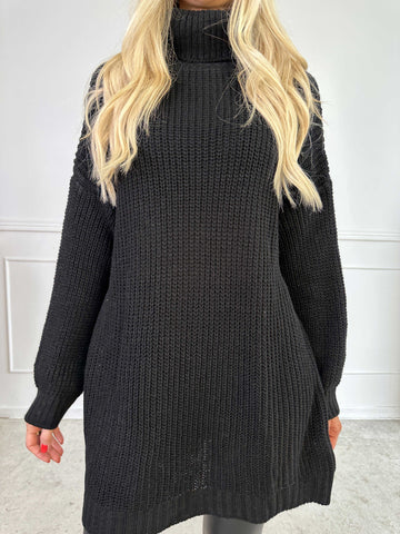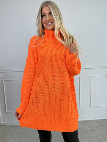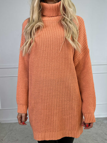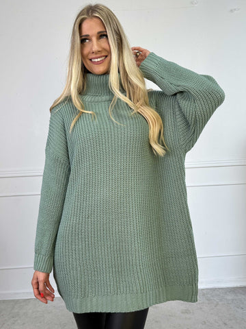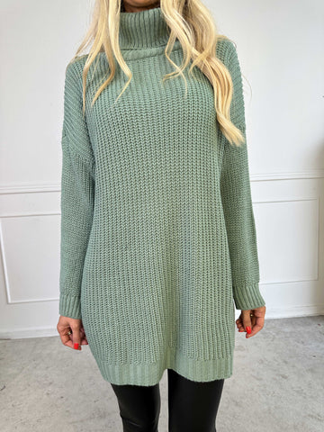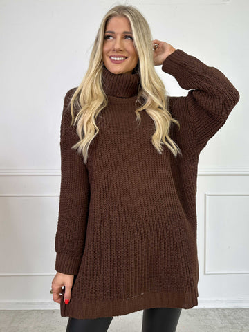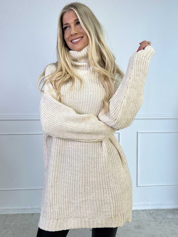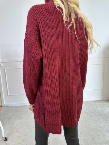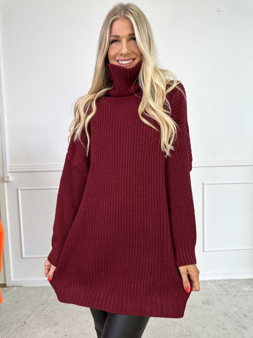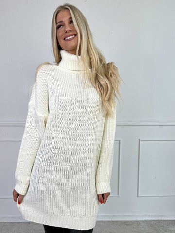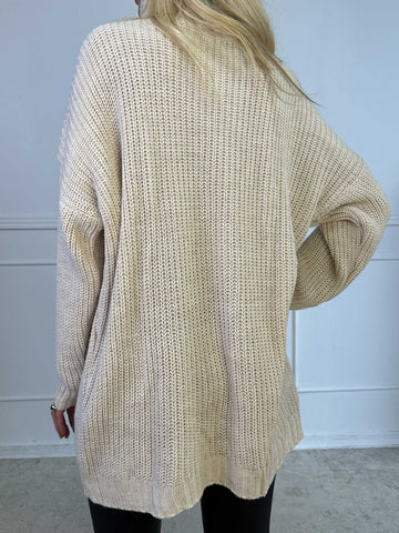 Cindy - Enfärgad mysig stickad tröja med polokrage