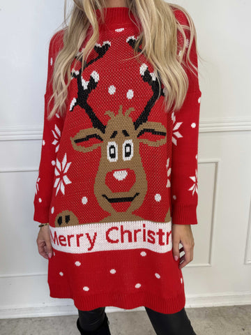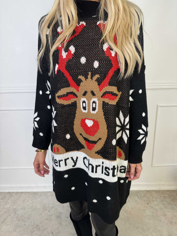 Pams Snow Short L/S - Elastisk klänning med jultryck