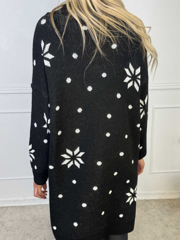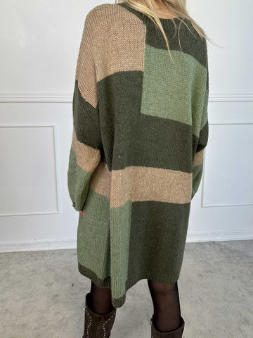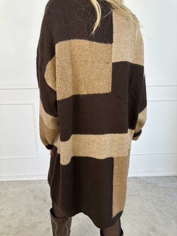 Sally Midi - Snygg stickad kofta med ballongärmar och fickor