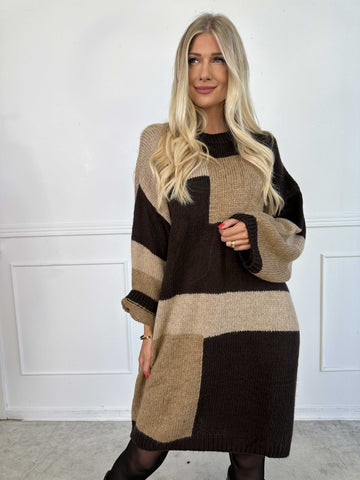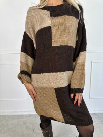 Ebba Paris Long - Elastisk mönstrad klänning med gulddetaljer