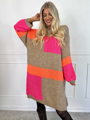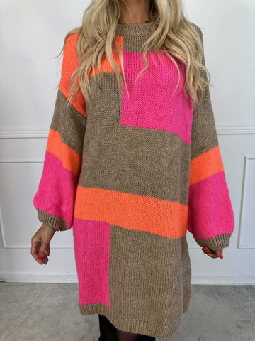 Veni - Hyggelig mønstret uldstrik med snøre i udskæringen