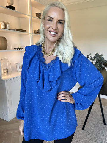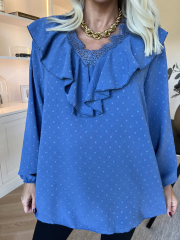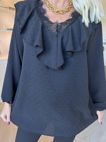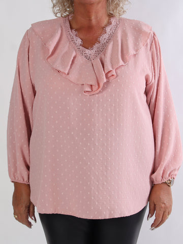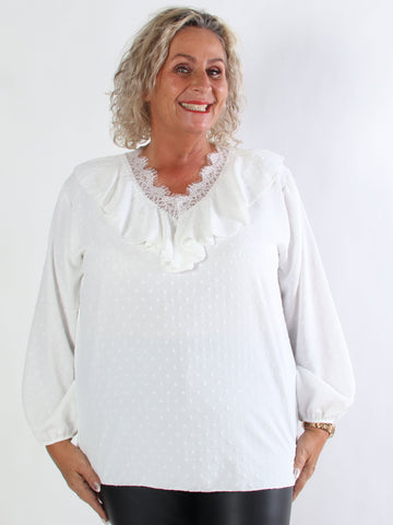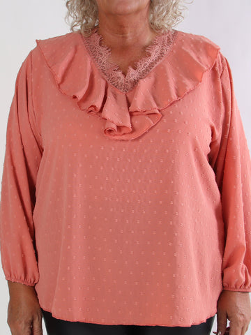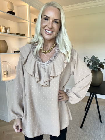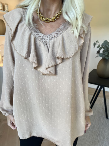 Sozan - Söt tunika med volanger och spetskant i ringningen