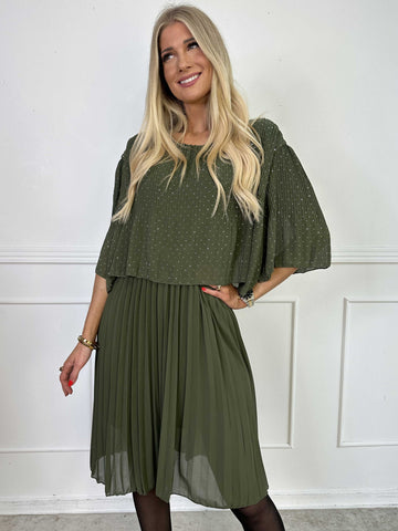 Saline - Söt ärmlös klänning i plisserad chiffong