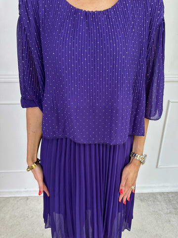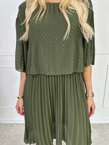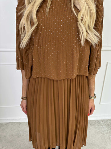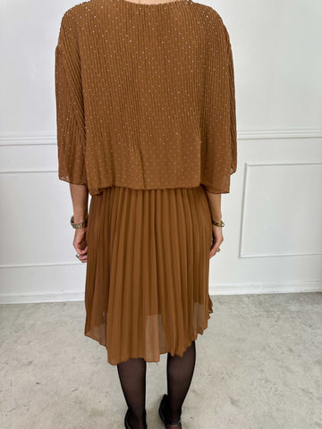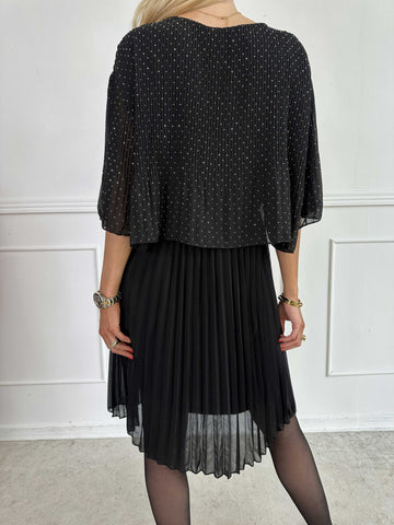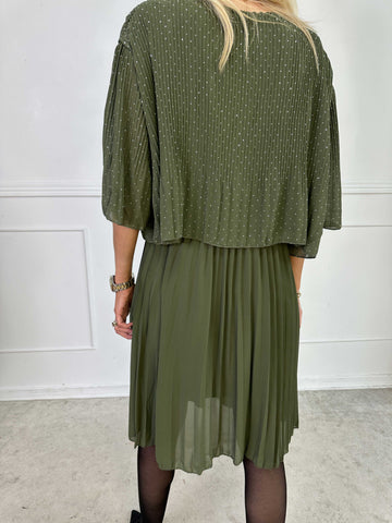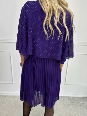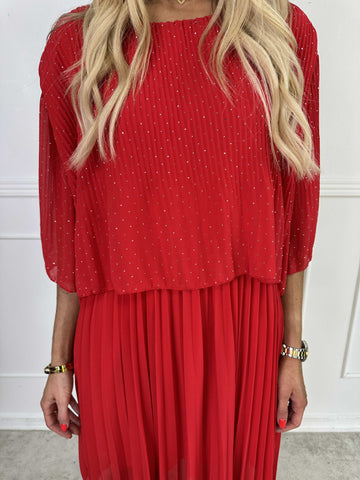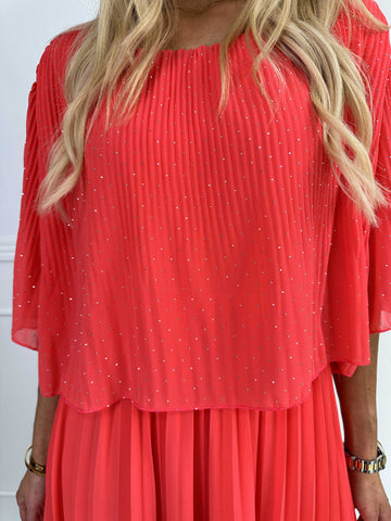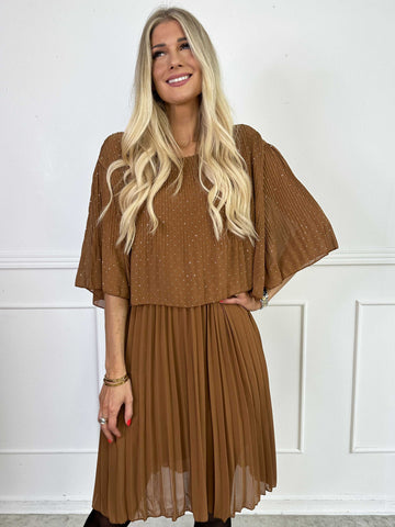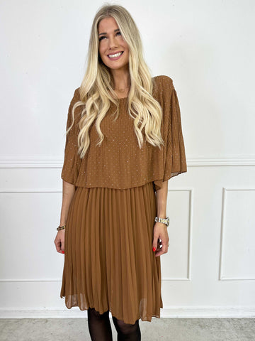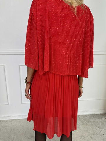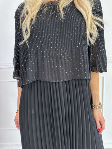 Kristina Crystal - Plisserad klänning i chiffong med dekorativ strass och volanger