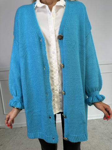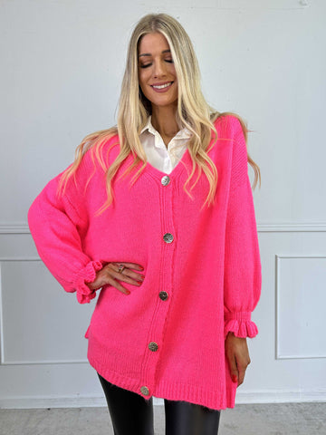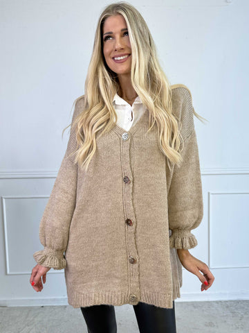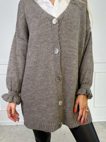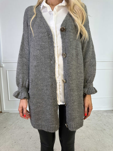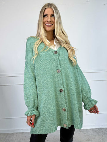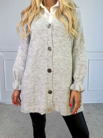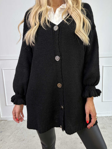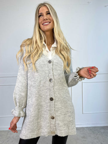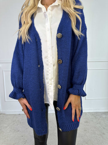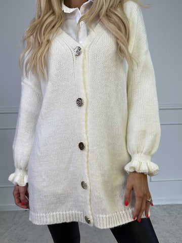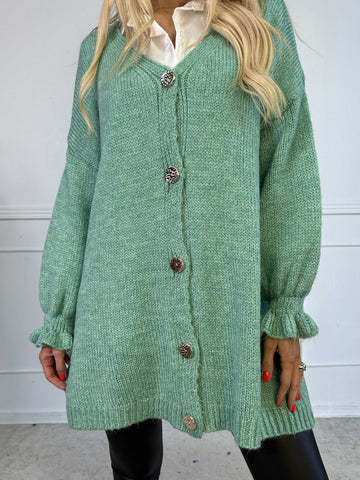 Celeste - Stickad kofta med guldknappar och söta volangärmar