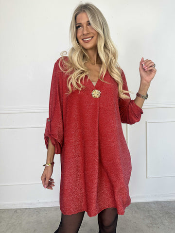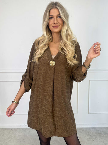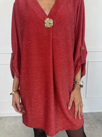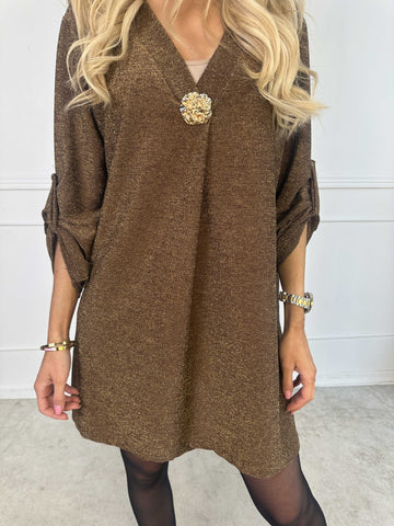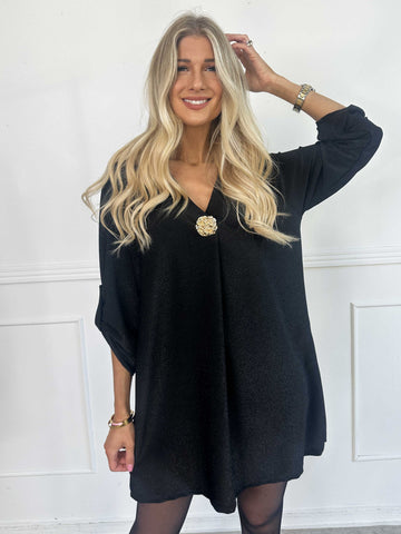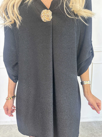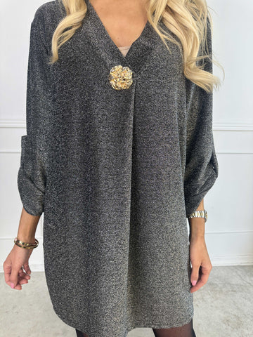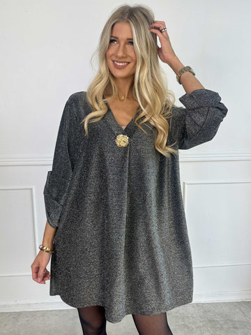Betty - Söt glittrig tunikaklänning med guldbrosch