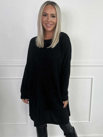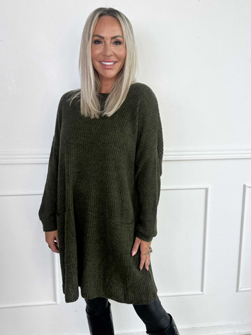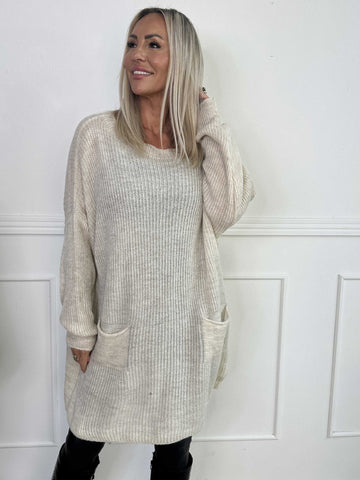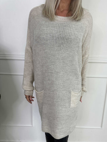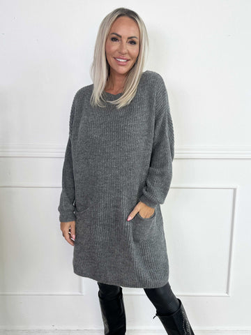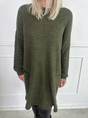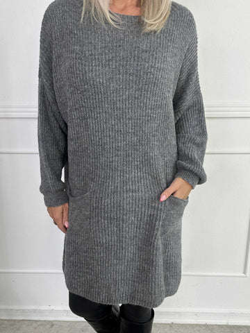 Miranda - Stickad klänning med fickor framtill