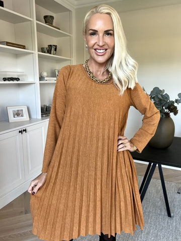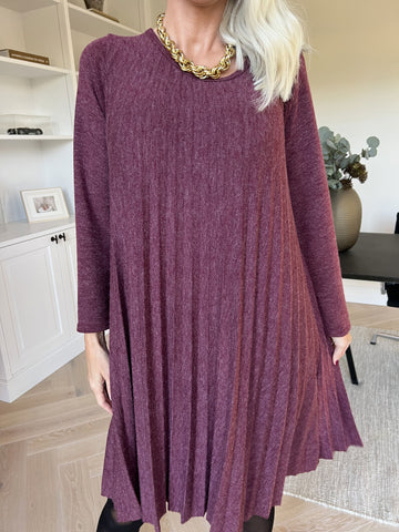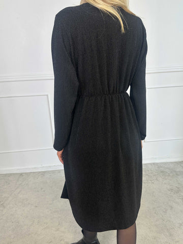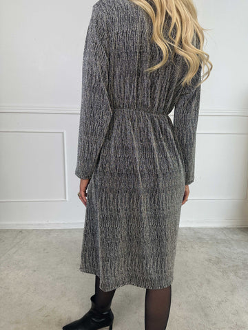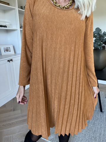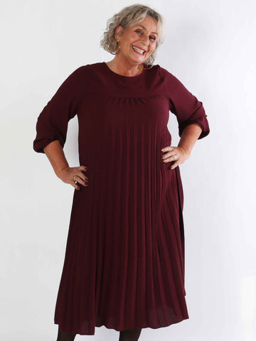 Nancy Long Sleeve - Lång plus size klänning med plissering och fickor