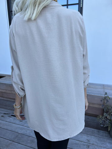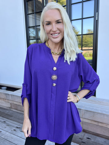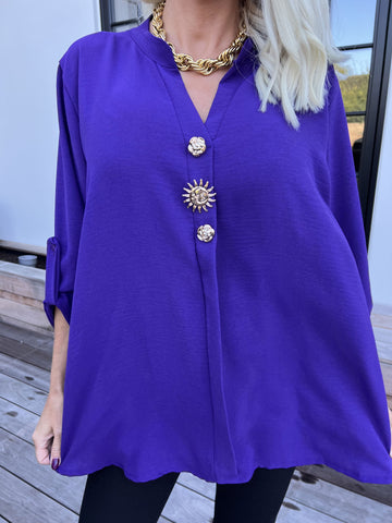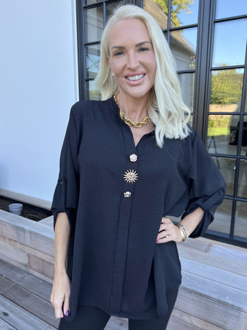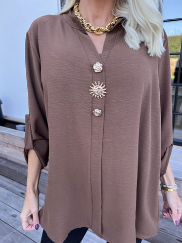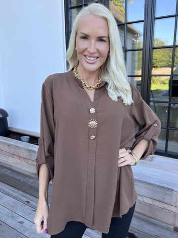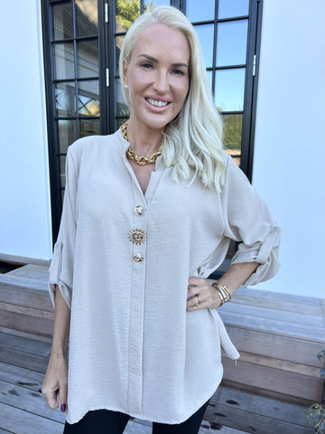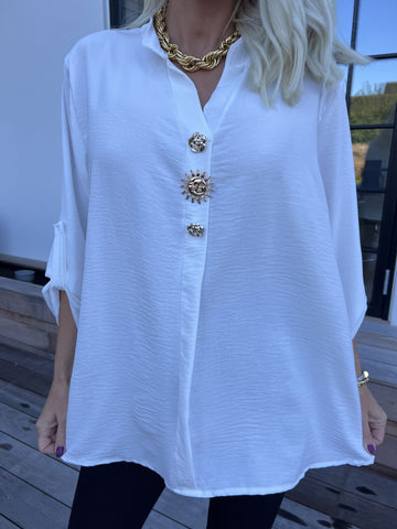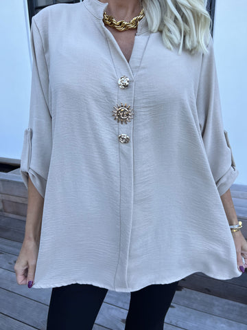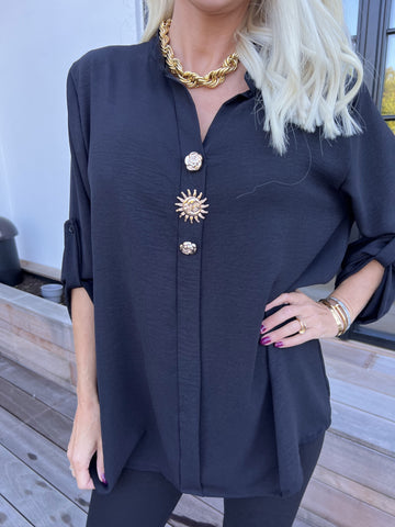 Bekka - Skjorta i viskos med guldfärgade knappar och brosch