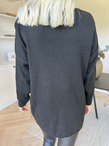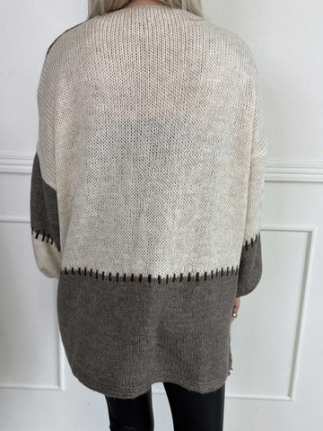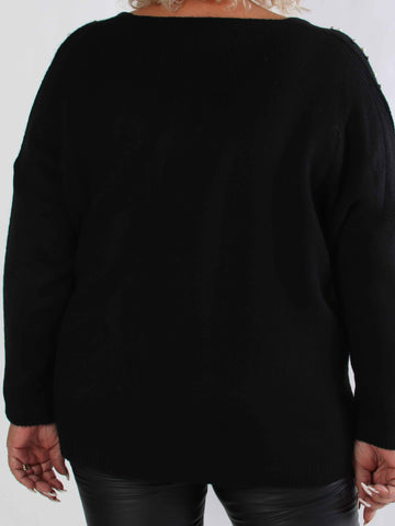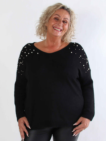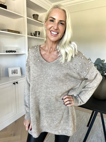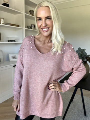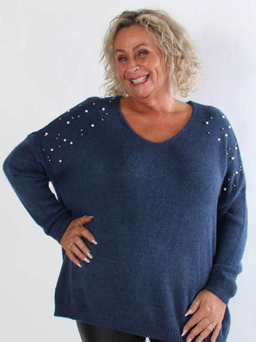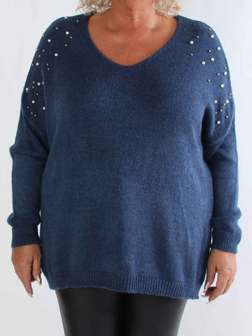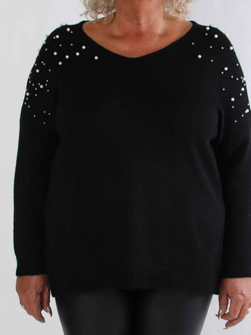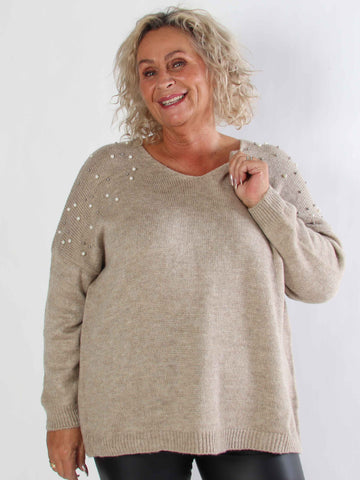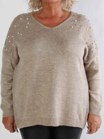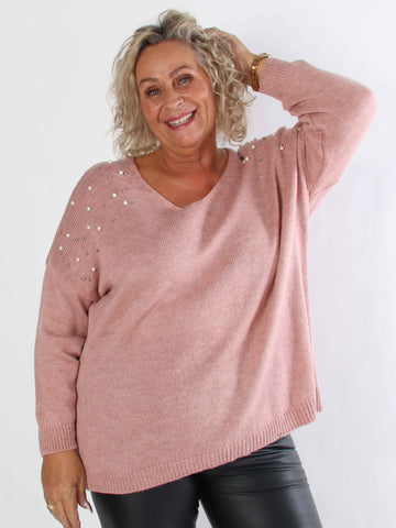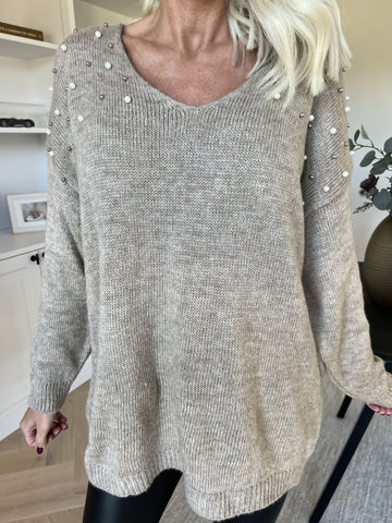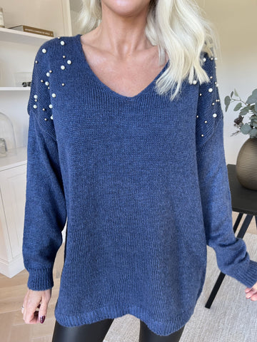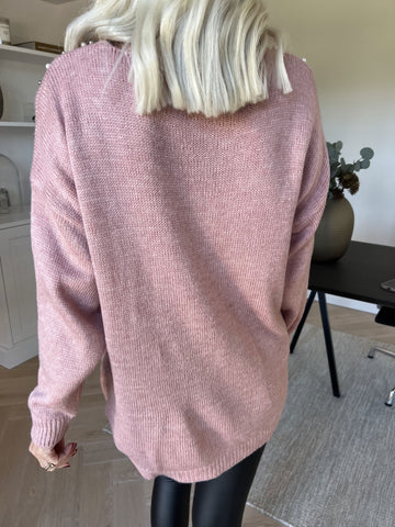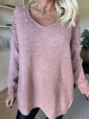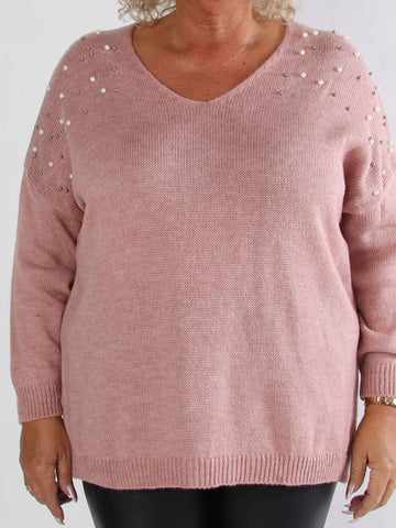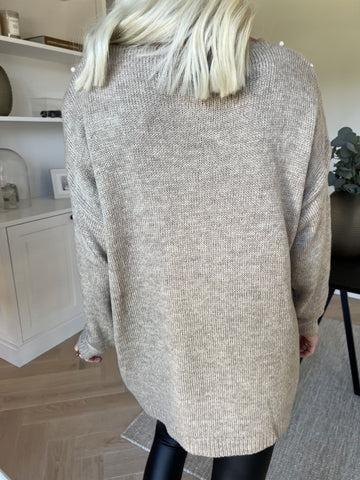 Rydika - Enfärgad stickad tröja dekorerad med fina pärlor