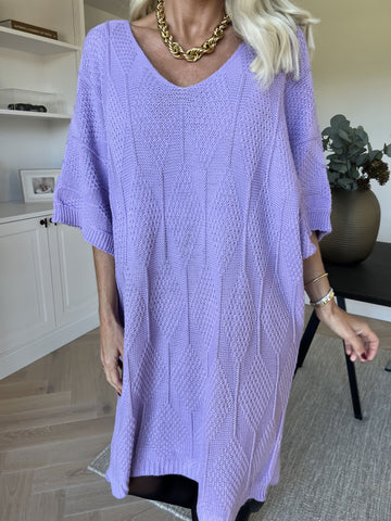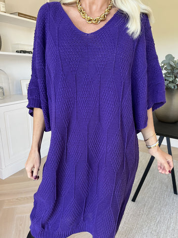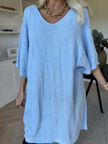 Amelie - Stickad klänning med v-hals och A på bröstet