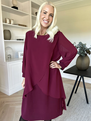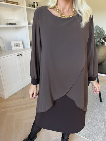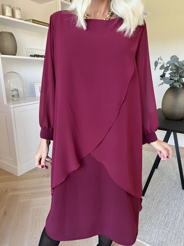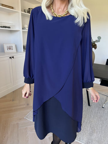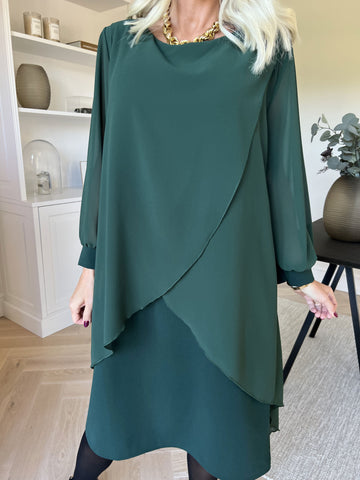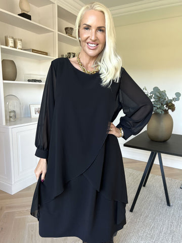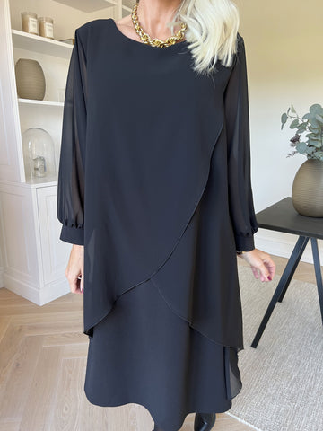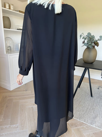 Pianora - Klänning med chiffonlager och semitransparenta ärmar