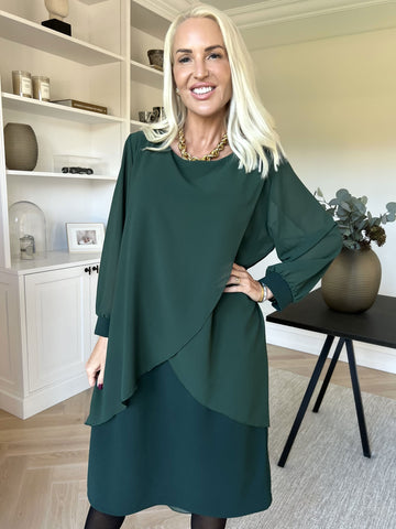 Sus - Armégrön tunikaklänning med söta volangärmar