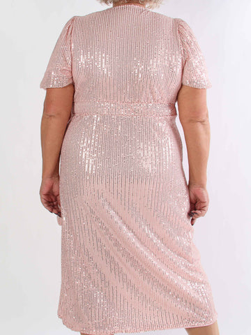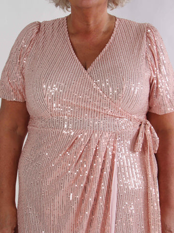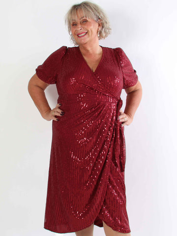 Eliana - Söt plus size-klänning i omlottmodell med volanger