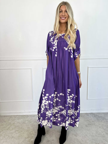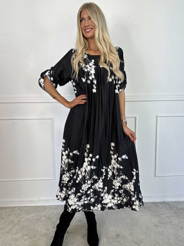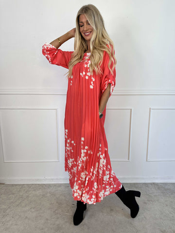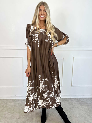 Nannie Blossom - Lång plisserad klänning med blommotiv