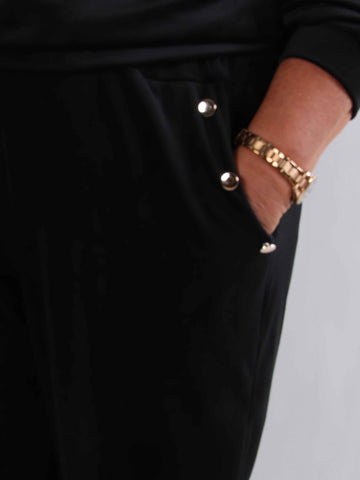 Olia - Svarta byxor med stenimitationer i knappen