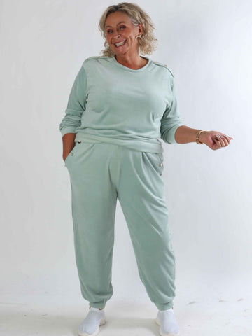 Arina - Plus size mjukisset i velour med guldknappar