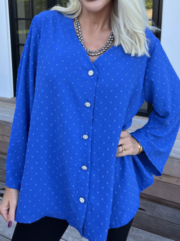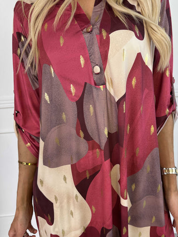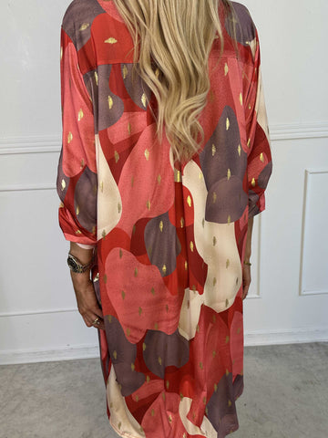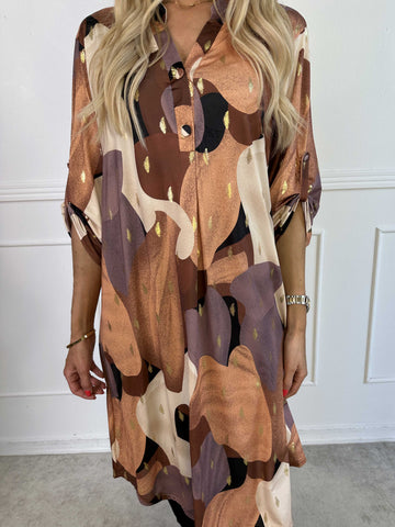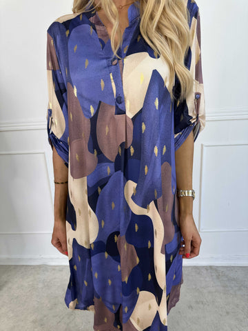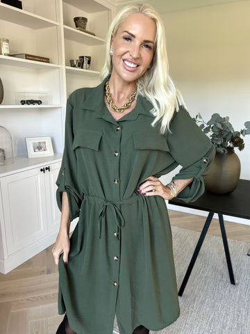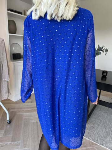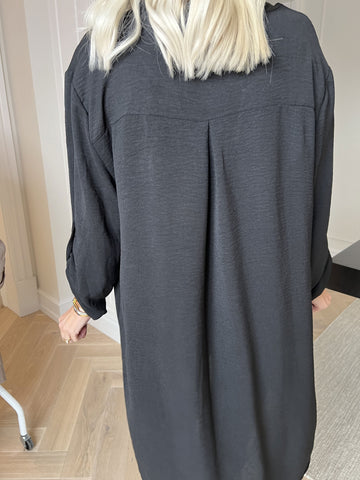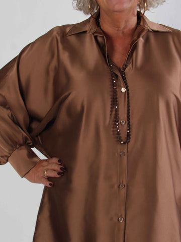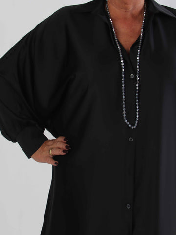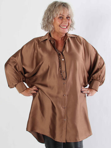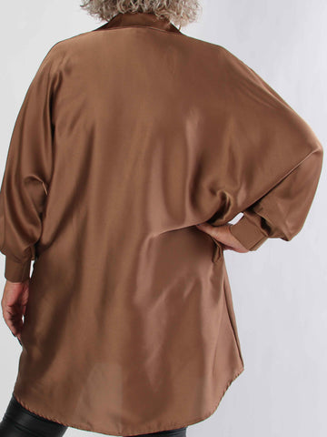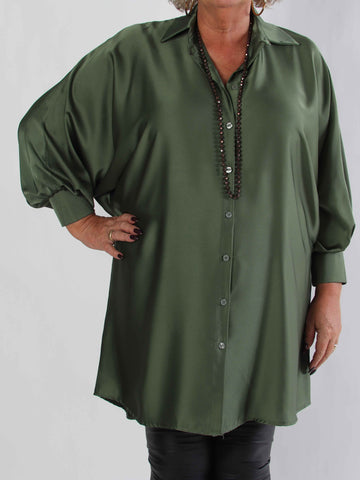Feliciti long - Shiny plus size skjortekjole med flagermusærmer