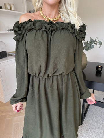 Chili Fitted Dress - Söt klänning med volangkant och resår i midjan