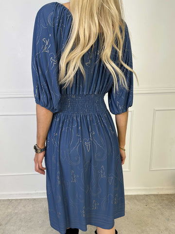 Natalia - Elastisk klänning med små vita prickar