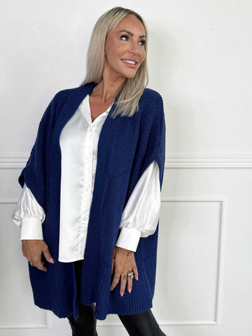 Elly Long - Lätt plus size kofta i viskos med hålmönster