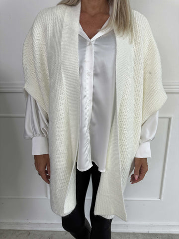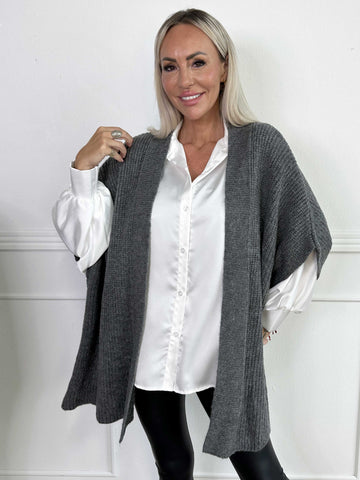 Delfini - Enfärgad stickad kofta med korta ärmar