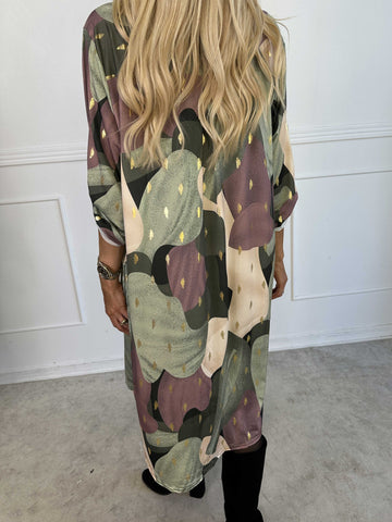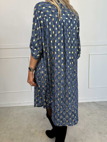 Ebba Pattern Long - Elastisk mönstrad plus size klänning med gulddetaljer