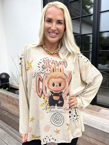 Hecate - Blus med söta motiv och glittertråd