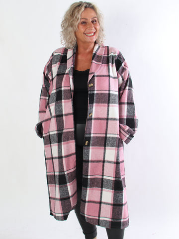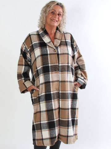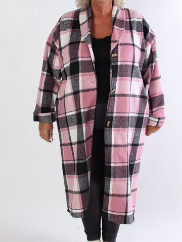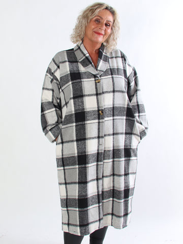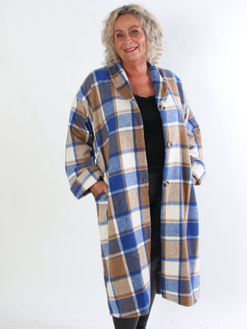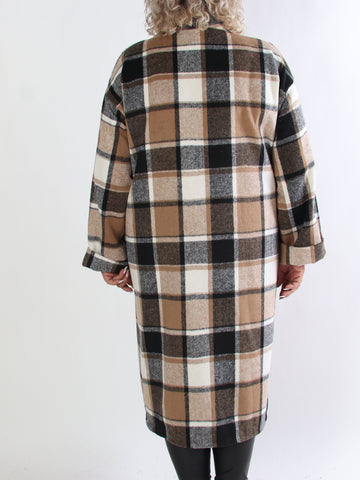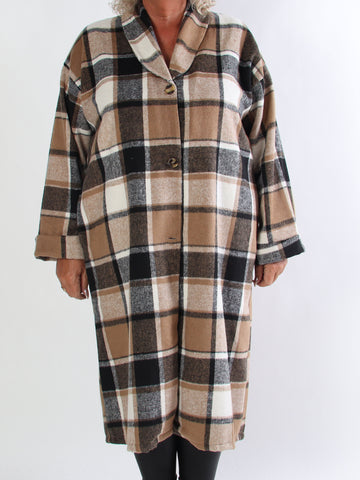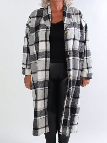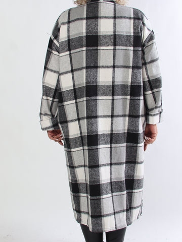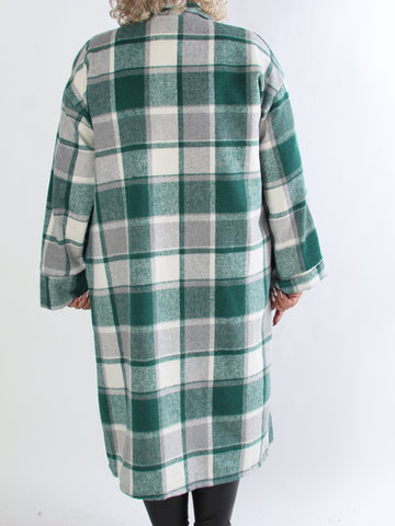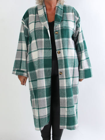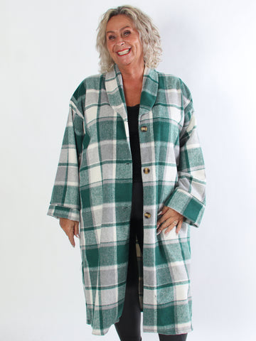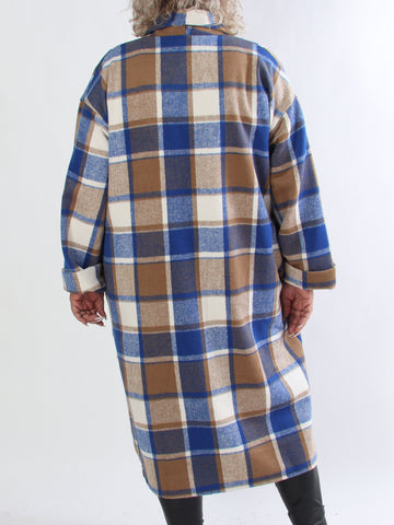 Karoline - Lång rutig plus size skjortjacka i viskos