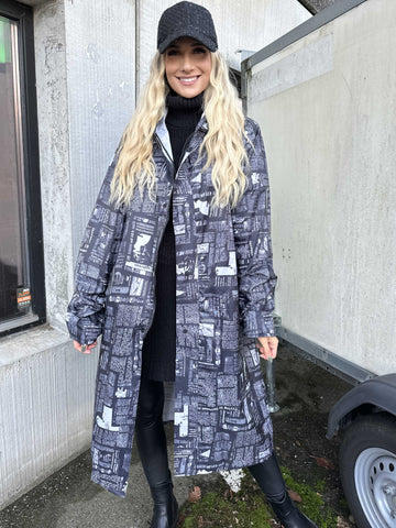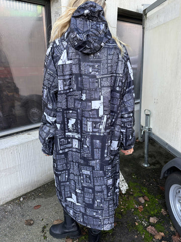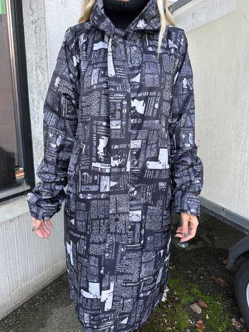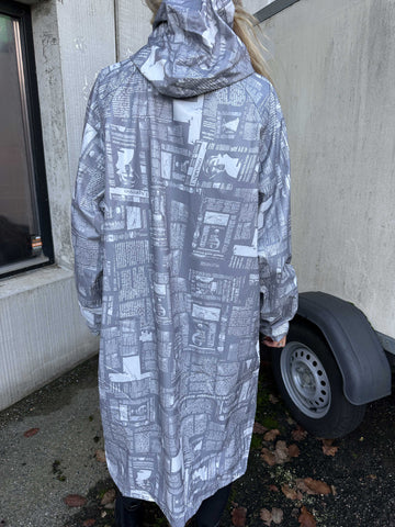 Reina Print - Regnjacka med tidningstryck
