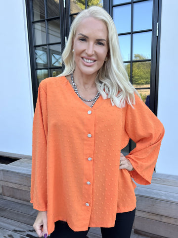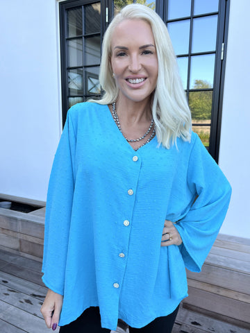 Feliciti - Shiny plus size skjorta med fladdermusärmar
