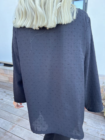 Georgina - Svart blus med söta ribbade volangärmar