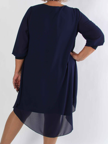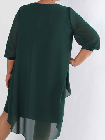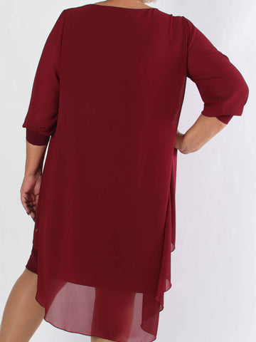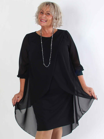 Pianora - Plus size klänning med chiffonlager och semitransparenta ärmar