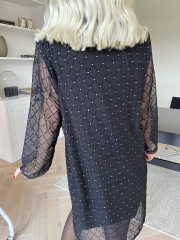 Ritte - Långärmad meshklänning med glitterdetaljer