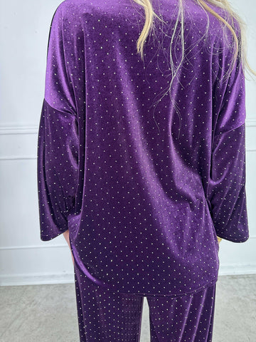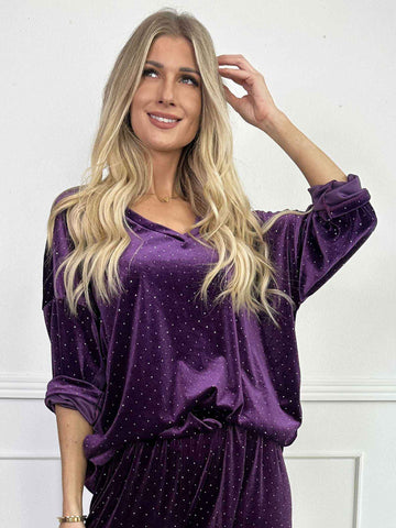 Sparkling - Blødt velour sæt med skinnede sten