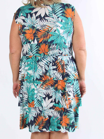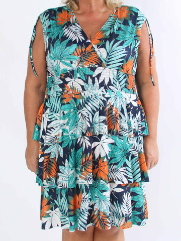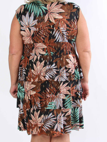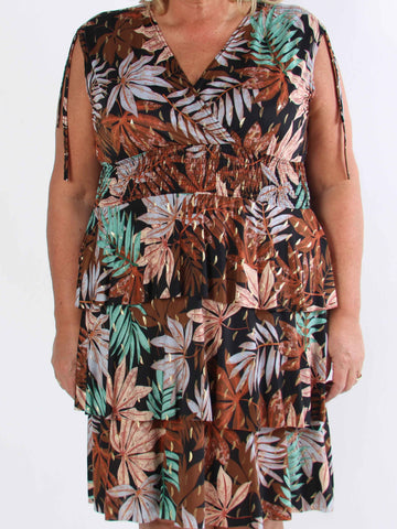 Pams Leaf Frills - Plus size-klänning med bladtryck och volanger