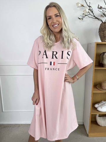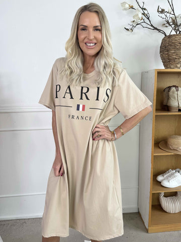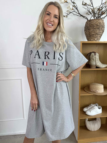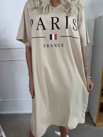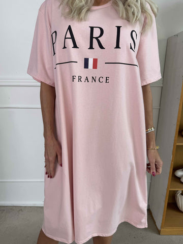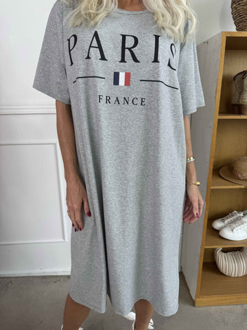 Alice - Joggingklänning i bomull med Paris stående på bröstet