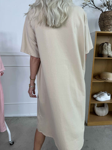 Mia - Enfärgad skjortklänning med resår i stor storlek