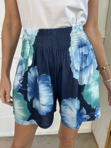Pams Flower Shorts - Elastiska shorts med blommigt tryck
