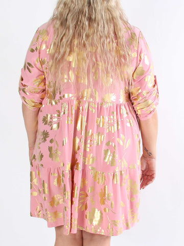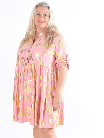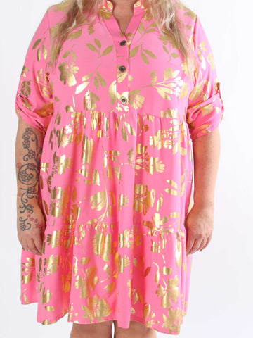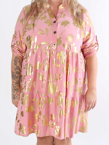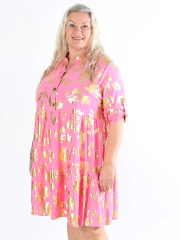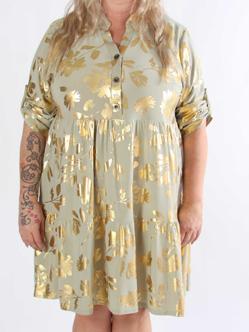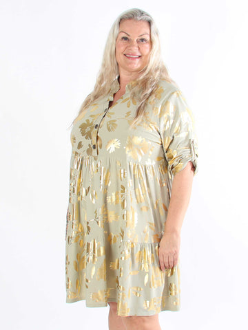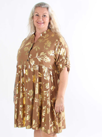 Valentina - Söt klänning i plusstorlek med fina guldblad