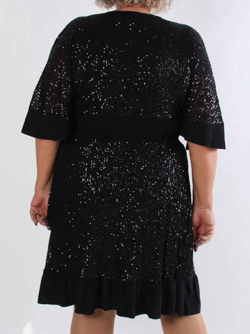 Kim - Söt elastisk plus size klänning med paljettärmar