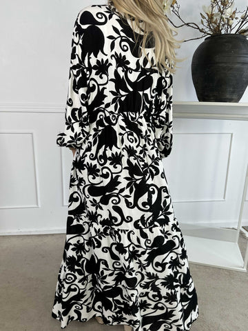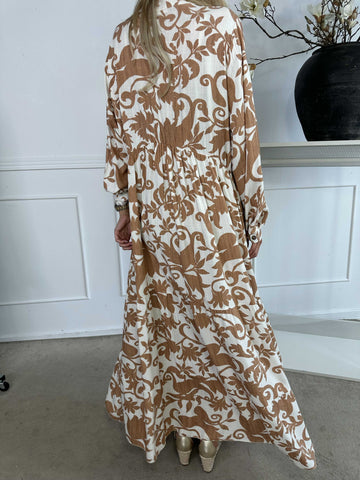 Ebba Boho Long - Elastisk mönstrad klänning i plus size med guldprickar