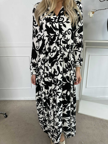 Sophie - Mönstrad plus size-skjortklänning i viskosblandning med volangkant