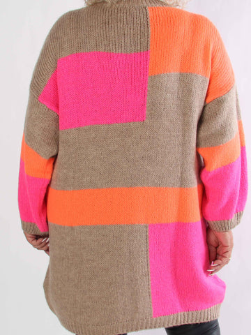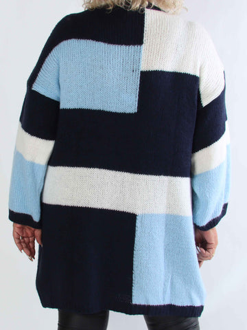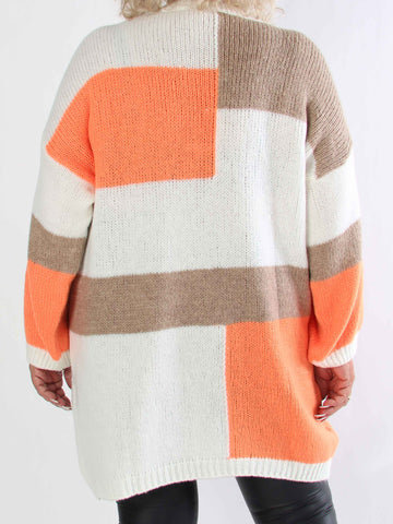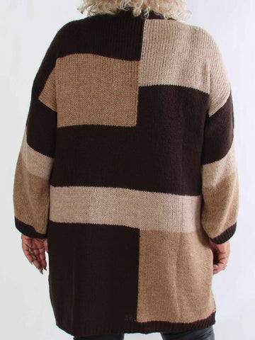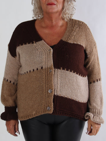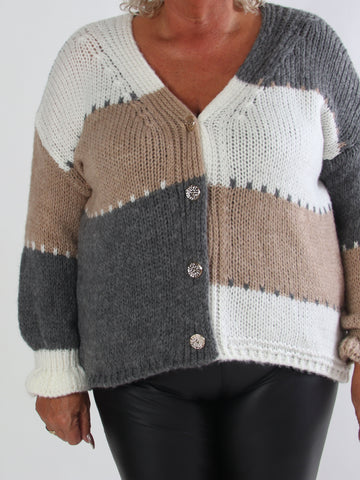Amberlyn - Rutig stickad plus size kofta med guldfärgade knappar