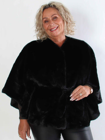 Barbara - Kort mjuk plus size faux fur kappa/jacka