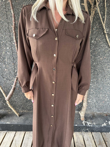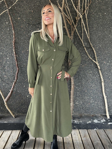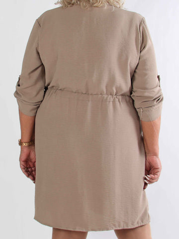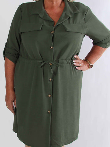 Baretta - Söt plus size skjortklänning med knytskärp i midjan