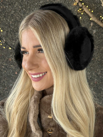 Carlita - Öronvärmare i mockaimitation med mjuk fuskpäls